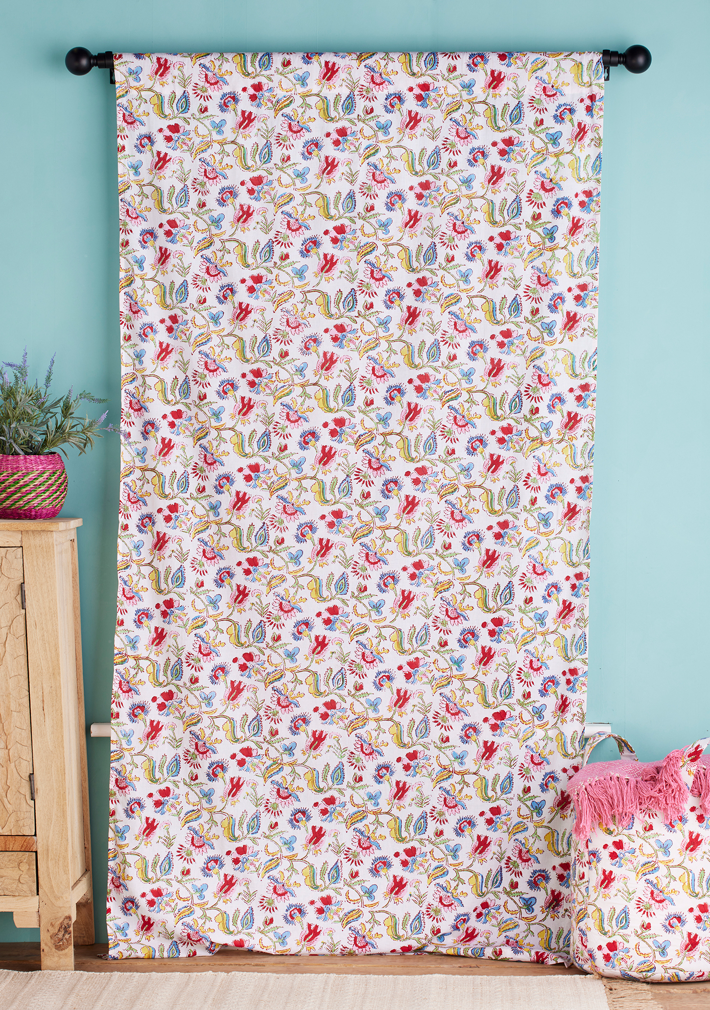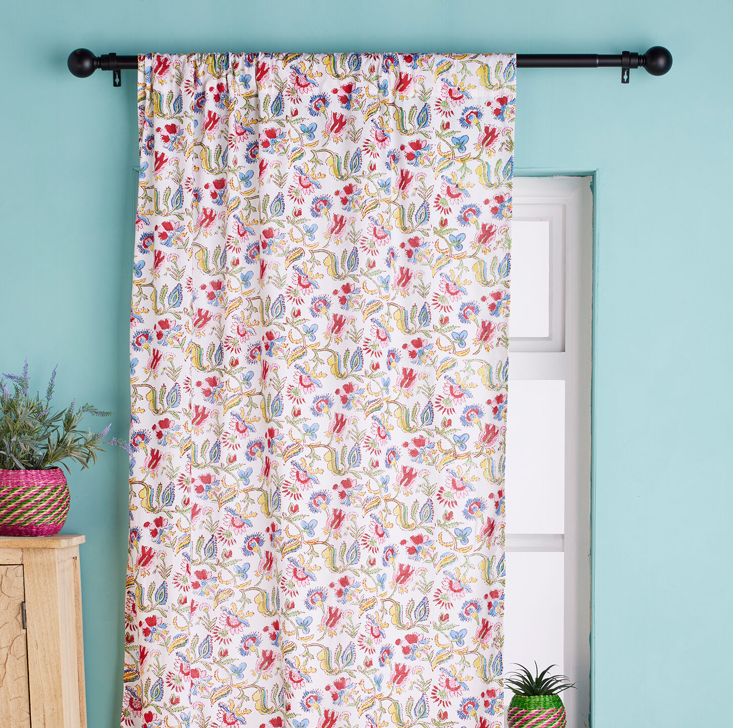 This 100% cotton curtain is hand crafted with our floral traditional Shvanthi hand block print design. The Shvanthi print now comes in a gorgeous range of products, to enable you to perfectly coordinate your space while adding privacy with this beautiful fair trade curtain.